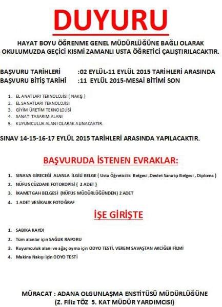 ADANA / SEYHAN - Adana Olgunlaşma Enstitüsü